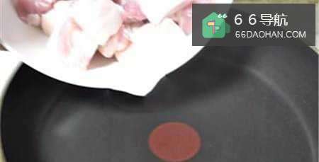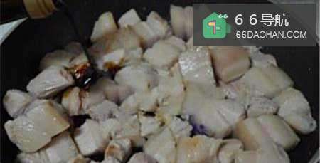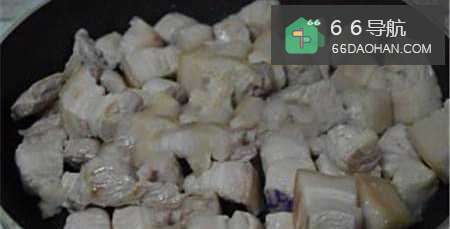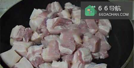 4净锅坐火(不放油),倒入沥干水分的五花肉。