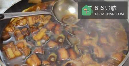 15焖至冰糖融化,继续烧制5分钟,至汤汁收到半干,变得浓稠光亮即成。