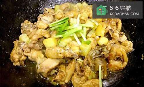 鸡肉先炒干水分后,加入生姜去腥,再放入土豆一起焖煮,最后加点小葱作为配色增加食欲感,土豆糯糯的非常好吃,鸡肉嫩而不柴。