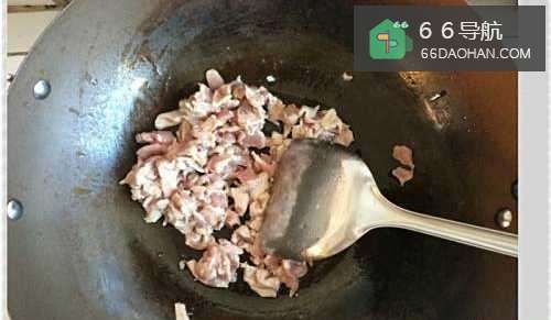 3锅里放适量的油,烧到七八热的时候把肉倒进去翻炒,如果是五花肉的话尽量先用肥肉炸点油出来再倒入其他的肉翻炒。