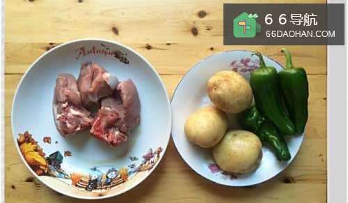 准备好所需要的食材,肉、土豆、青椒,其实买五花肉味道会更好哦。