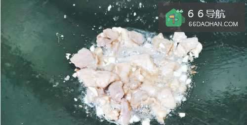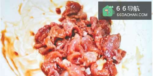2把猪肉洗干净切成片,加蚝油,鸡粉,盐搅拌均匀腌五分钟。