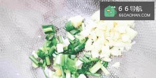 3大蒜籽去皮切碎,香葱处理干净后切成葱花。