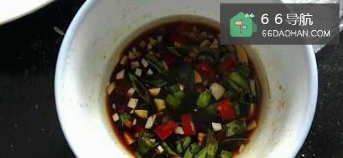 3将辣椒 酱油 大蒜 香油 醋搅拌均匀 然后锅内倒入适量油烧热后倒入调料中拌匀