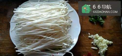 金针菇去根撕成条 大蒜切末 辣椒切丁 葱切好