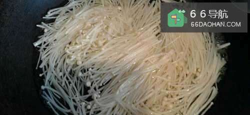 2将金针菇洗净放入沸水中焯一分钟 加入一茶勺盐 捞出沥干水