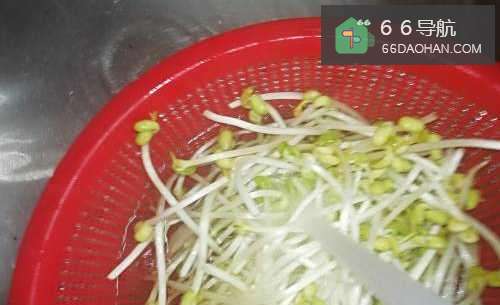 5将200克豆芽摘洗干净、找一个大盘,将豆芽垫在下面备用。