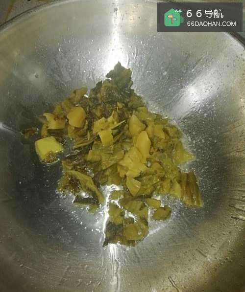 将事先洗净的酸菜倒入,翻炒闻到香味后,盛入大盆中。