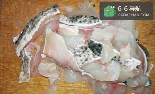 用刀削去黑鱼的鱼身,留下骨架和鱼头剁碎。