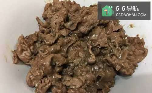 2腌好的牛肉片用热锅和少许油炒开,变色后即可起锅待用。
