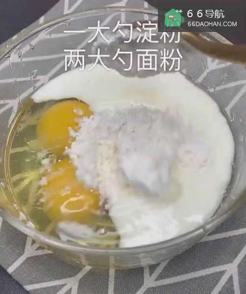 2然后加上两勺白砂糖,一大勺淀粉,2大勺面粉