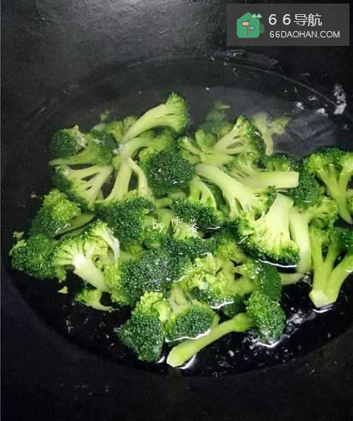 3煮锅倒入适量清水,调入适量盐,植物油烧开,放入西兰花焯水;