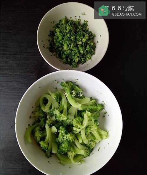 4焯水后的西兰花捞出,滤干水分;将西兰花顶部的绿色切下来;