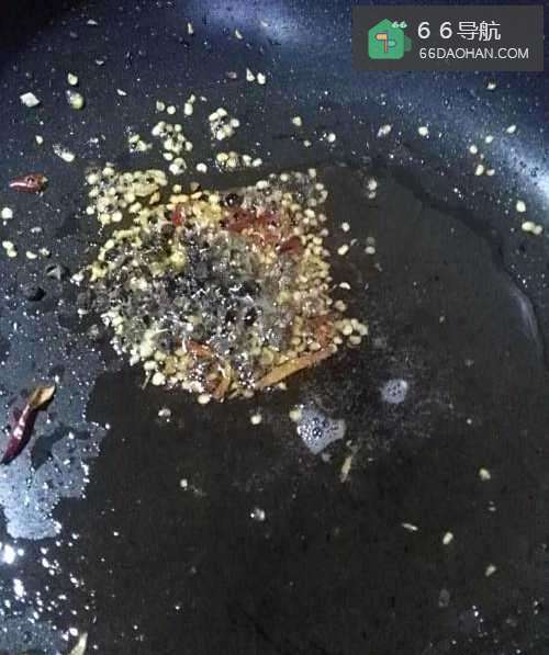 2锅烧热,加入适量油,油热后将花椒和干辣椒放入锅中炒香