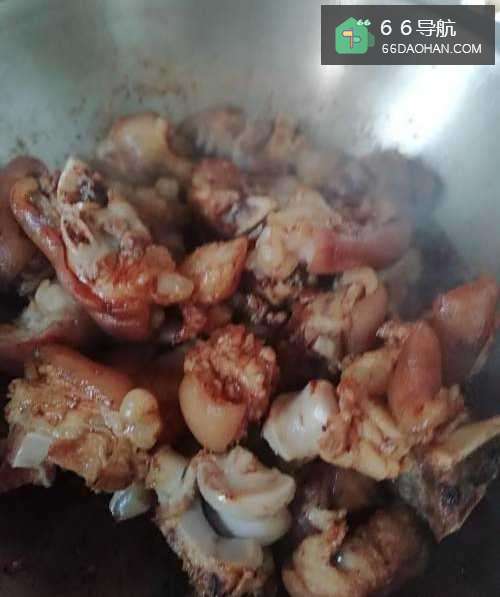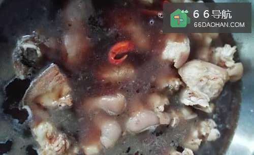 9水快烧完了,用一根筷子捣一下,试试猪蹄是否烂了。