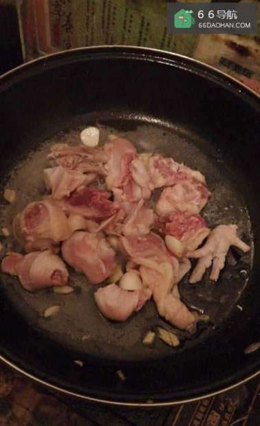 4第四步,油锅加热先把鸡肉爆炒一下,高温刺激鸡肉里边的蛋白质分解出来。