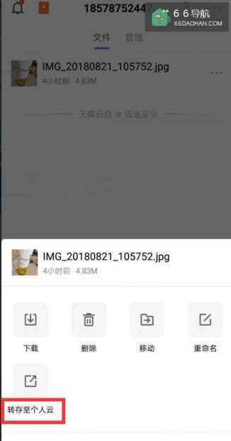 2点击“家庭云”空间,找到误传的文件或素材后点击素材,然后选择“转存至个人云”。