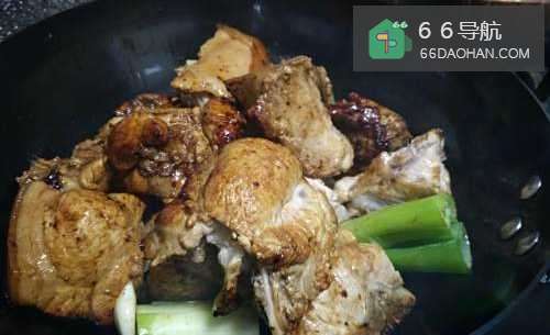 4起锅烧油,加冰糖融化,放入焯水的脊骨均匀的裹上糖色,如下图!