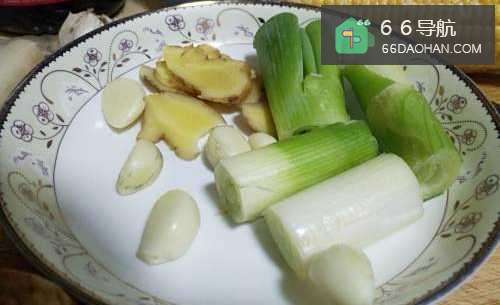 3准备葱切段、姜切片、蒜粒拍一下,喜欢辣椒的可以准备点。