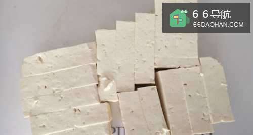首先,我们将北豆腐切成长方形小条,如图;