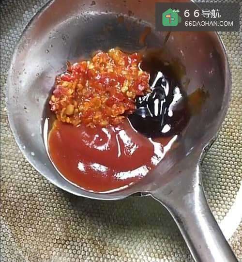 5加蚝油、蒜蓉辣酱、番茄酱,倒入锅中炒一下,加水,再加盐,鸡精、白糖。