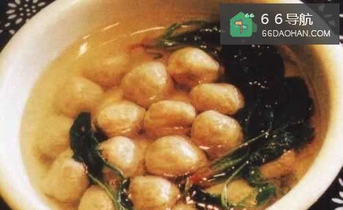 三味圆,俗称汤面筋,用水面筋作皮,馅芯以鸡脯肉、鲜虾仁、猪腿肉加葱、姜、黄酒等调料剁细精制而成,在鸡汤内煮熟,皮薄馅嫩。