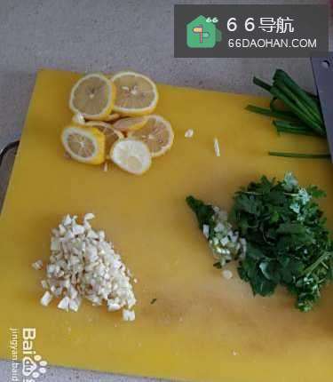 同时准备好另外的食材,香菜,葱,柠檬,蒜瓣。