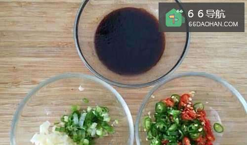 蒜切碎、葱切小段,湖南椒、指天椒切小段。