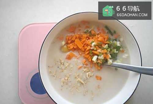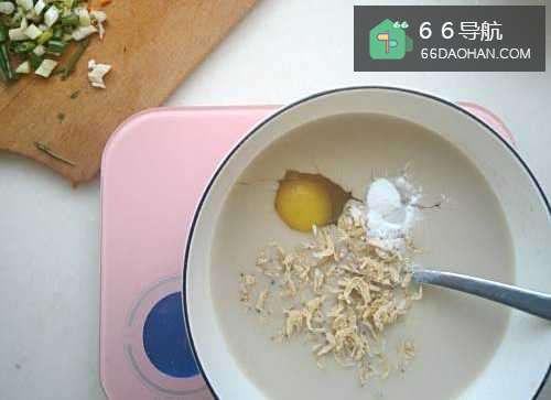 3豆浆碗中加入虾皮,鸡蛋,盐,