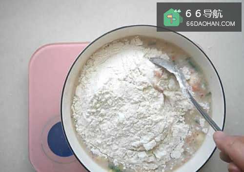 7不粘锅放入少许油,放入适量面糊,一面煎黄翻面