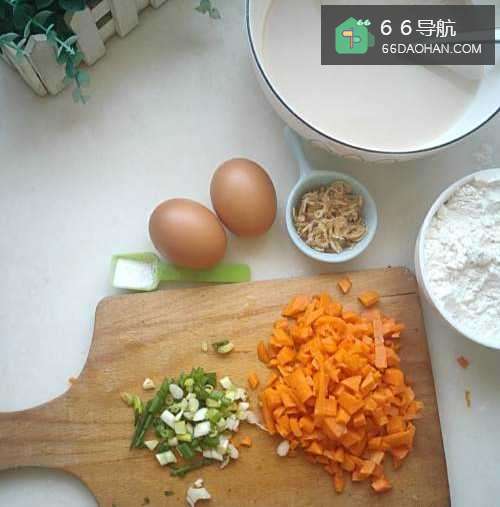 2准备好所需要的材料,红萝卜,小葱切丁备用。