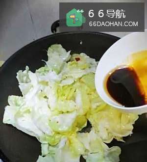 5将沥干水分的包菜放入锅中翻炒 全程大火 20秒钟后加入勾兑好的芡汁倒入锅中继续翻炒 大约1分钟不到就可以出锅了 千万别太久 不然就不脆了