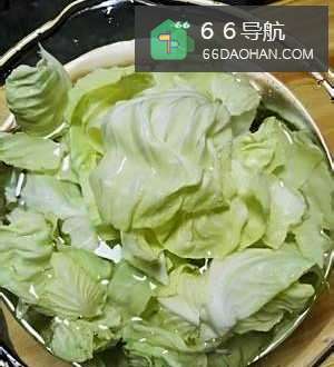 包菜用手撕成大块 一片叶子一分为二最佳 放入水中待用 要用的时候再沥干水分