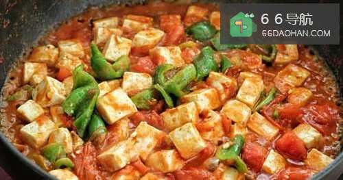 7再放入豆腐块晃动锅子,使豆腐裹上西红柿的汤汁