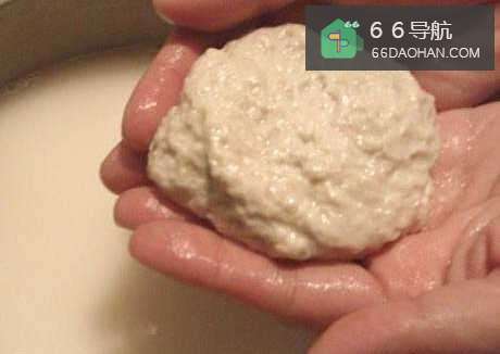 首先我们需要面团一块,用手揉硬一点,再加点水,弄成面筋。