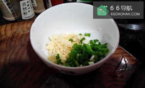 5豆腐都煎好了以后,把豆腐铲到锅子一边,把大蒜子和葱末倒入油里炒香,倒入冷水,把豆腐拨下来,冷水盖住豆腐,加入盐,生抽,煮开水后加入肉末煮熟。