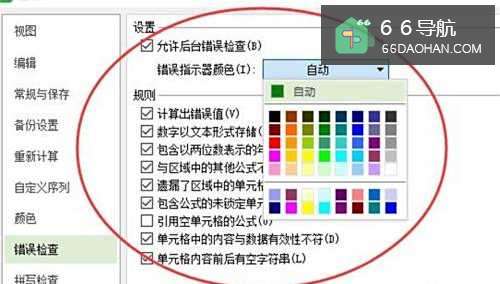 Excel检查错误的表述和WPS不一样,但设置的方法是一样的。