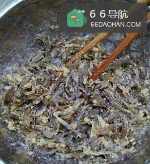 2控干水的小虾米加入适量面粉,玉米面脾矿良粉,少许盐和小苏打。