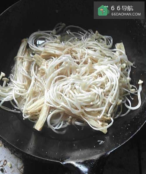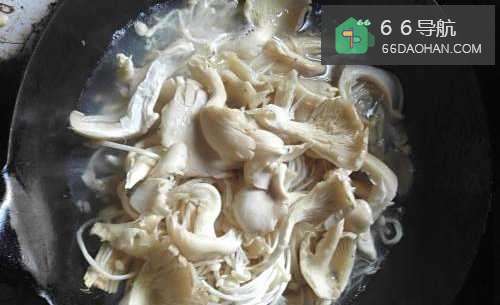 3锅放水,将鲜蘑,金针菇,烧开,煮一下!捞出控水!