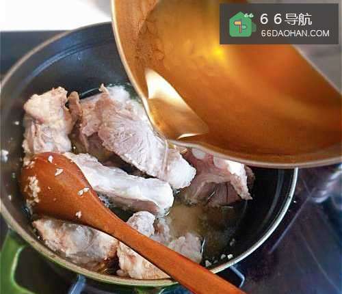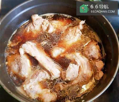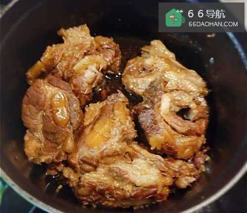3再加入味醂、酱油、盐、醋及冰糖,用小火炆约有1小时,熄火焗半小时。