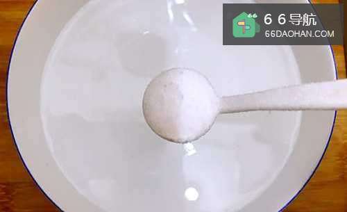 3取一大碗,倒入适量饮用水(凉水),并加入一小勺细盐