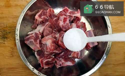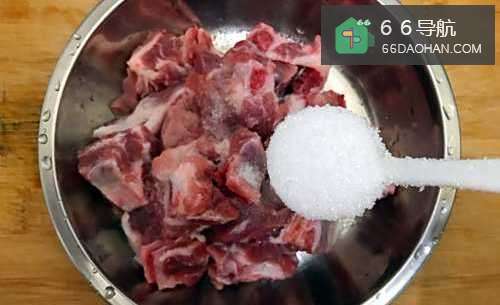 6排骨切小块,洗净,控干水分