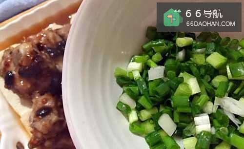18蒸好取出盘子,撒上小葱即可
