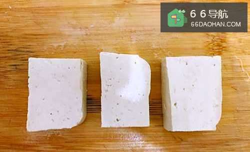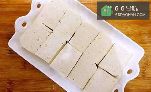 14捞出浸泡好的豆腐,如图所示,切成块状