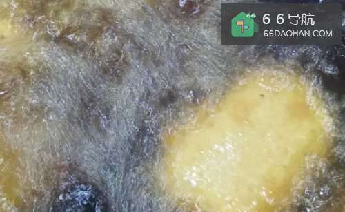 6把火调小,用筷子,不停的翻动油锅里的糖糕,等糖糕的颜色变色之后,继续翻动。