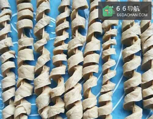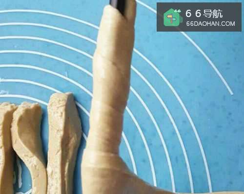 4然后出锅 用冷水泡一会儿 (目的不让他太黏),接着用竹签把它串起来,然后用刀子割。