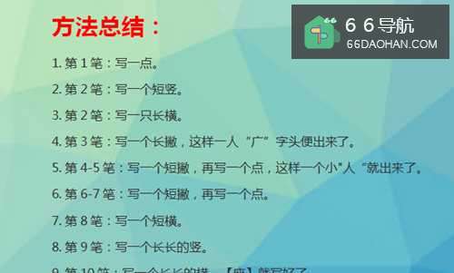 3第3笔写一个长撇,这样一人“广”字头便出来了。