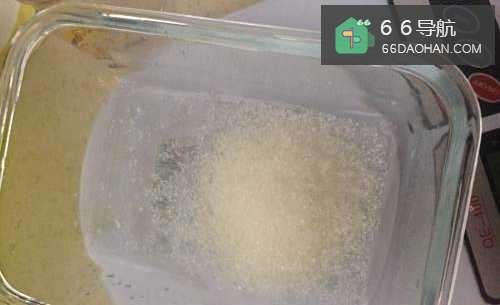 5碗里放入砂糖,南瓜泥过筛倒入,搅拌均匀;