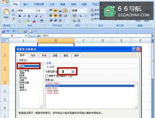4在【设置单元格格式】中,选择【数字】;然后,点击【数值】,设定小数位数和格式。