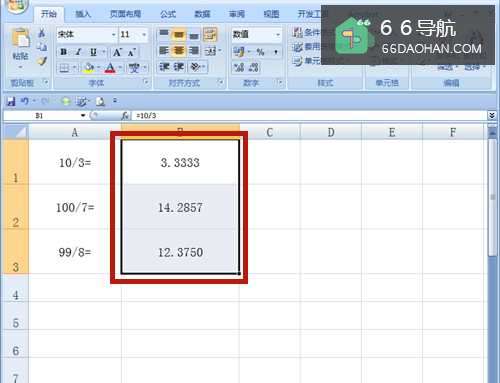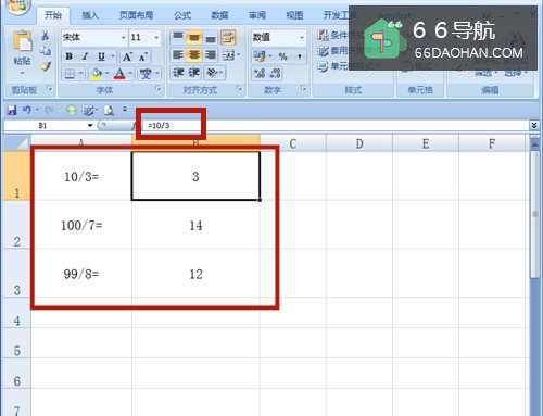 打开excel表格,输入公式和数据,如在B1单元格输入公式【=10/3】。